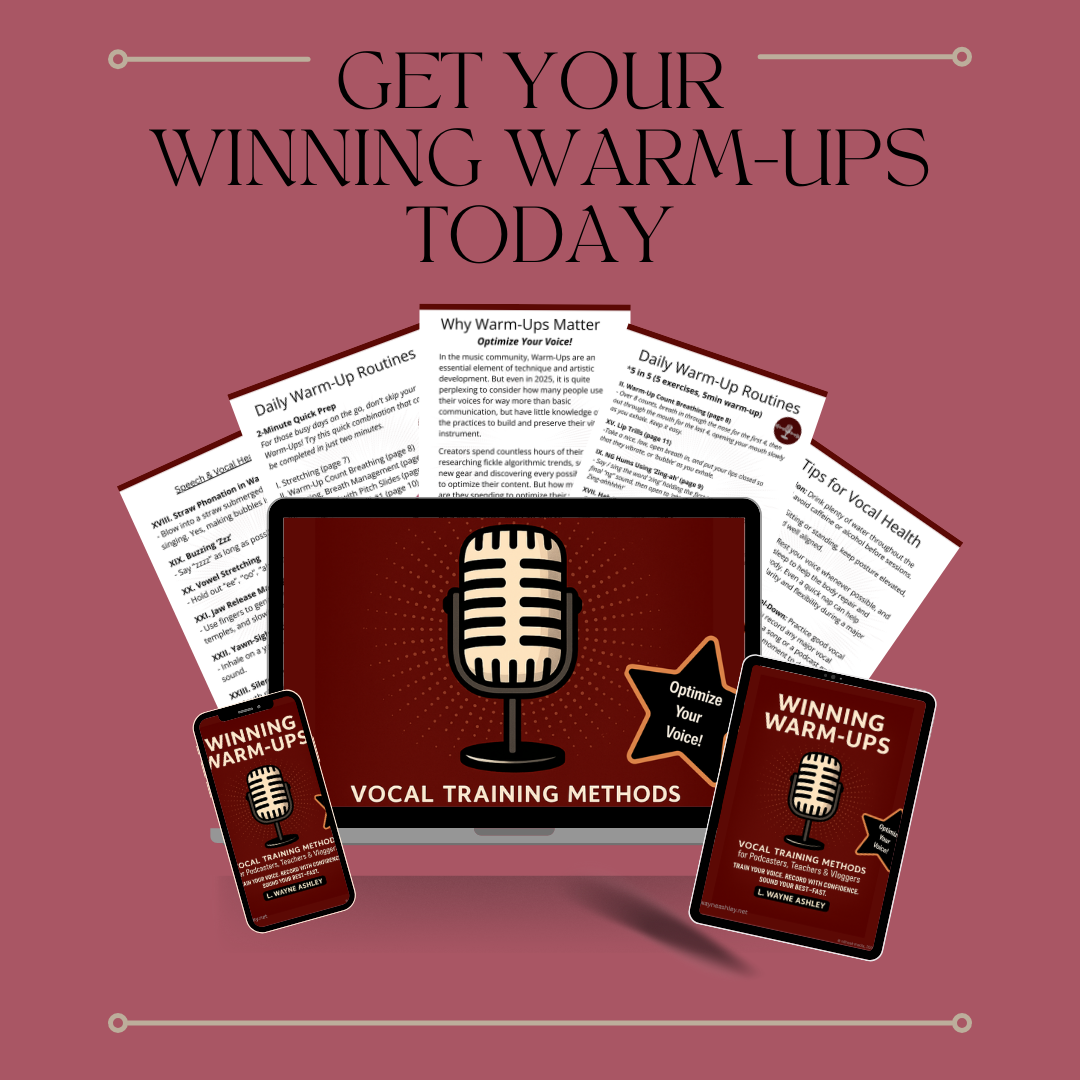 Just like athletes stretch before competition, you can—and should—warm up before stepping behind the mic or in front of the class. These are your vocal optimization tools for lasting success in podcasting, broadcasting, and video creation.